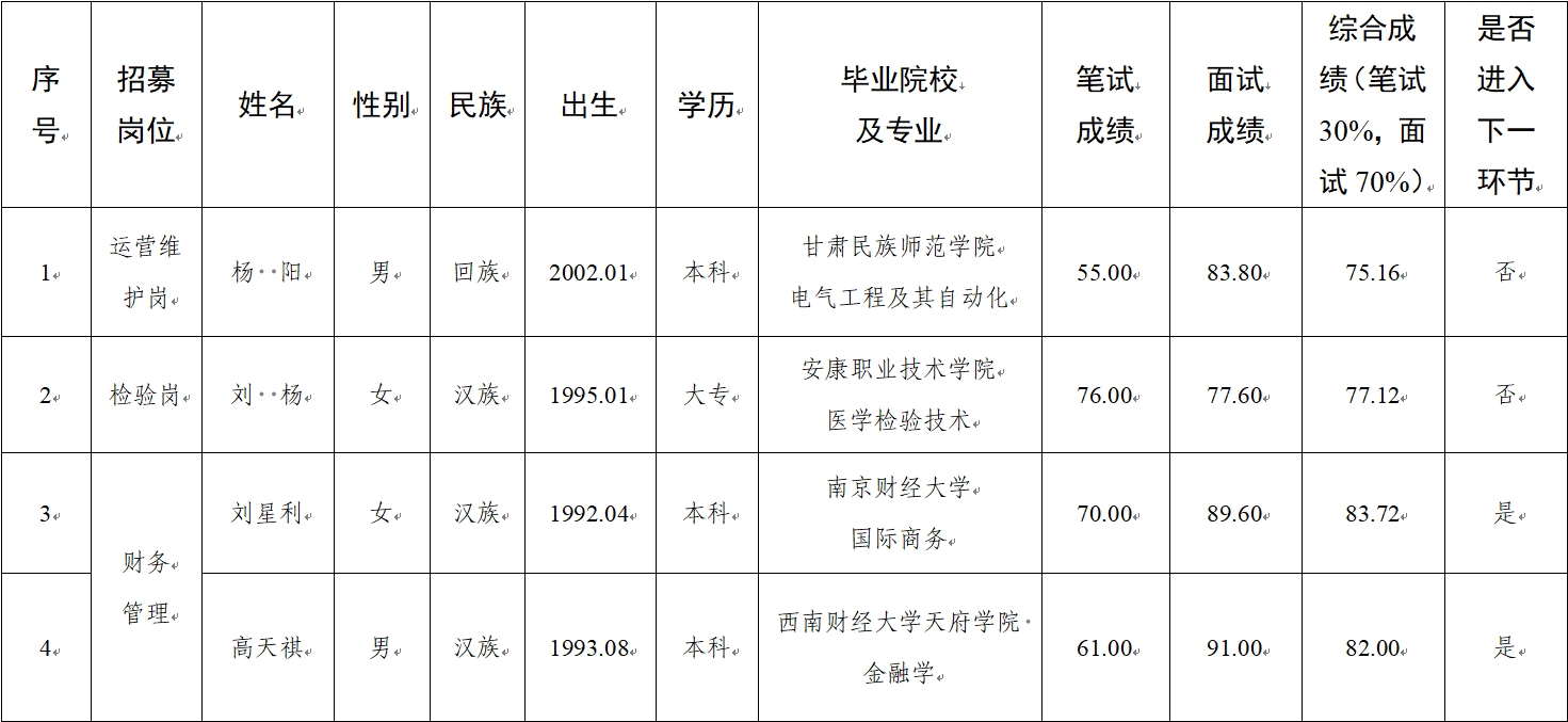 水建公司、新能源公司、醫(yī)療科技公司社會(huì)招聘人員筆試、面試成績(jī)公示