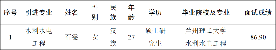 2023-05-26根據(jù)《2023年平?jīng)鍪幸M急需緊缺人才公告》,市產投集團對2023年擬引進的3名急需緊缺人才完成了資格審查、面試等工作程序,已完成2名擬引進人才考察、體檢工作,其余1名擬引進人才為應屆生。現(xiàn)予以公示,接受社會各界監(jiān)督。如發(fā)現(xiàn)在德、能、勤、績、廉等方面